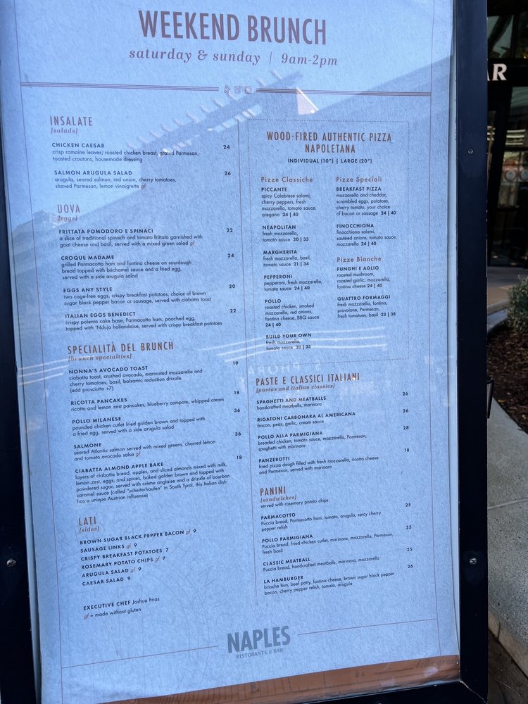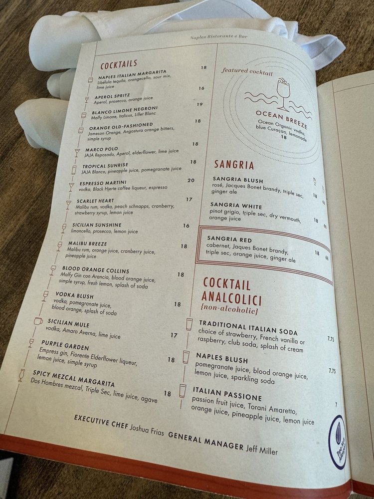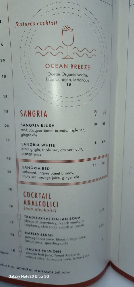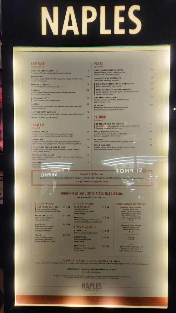 Introducing the menu at Naples Ristorante E Bar, located in Anaheim, California. This classy yet casual restaurant offers a variety of options for diners, from cocktails like the Naples Italian Margarita to featured drinks like the Spicy Calabrian Margarita. Their Sangria options, including Sangria Blush and Sangria White, are perfect for a refreshing treat. Customers rave about the generous portions and delicious flavors of dishes like the carnivore pizza, chicken penne pasta, chicken parm, and Hawaiian pizza. The atmosphere is perfect for groups and families, with waitstaff like Wesley going above and beyond to make your experience memorable. With a focus on fresh ingredients and excellent service, Naples Ristorante E Bar is a must-visit for anyone looking for a satisfying dining experience.